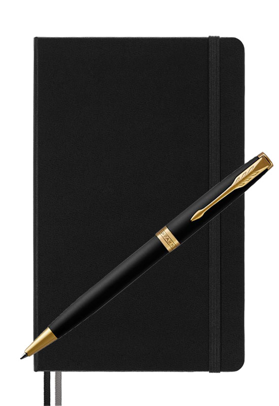 Parker Sonnet Matte Black Gt Moleskine от официального дилера Parker в Сургуте. Вы можете дополнительно заказать гравировку, которая подчеркнет Вашу оригинальность и придаст памятность статусному подарку. Все ручки Паркер поставляются в фирменном футляре.